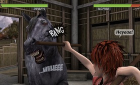 Lesbians fight for horse cock