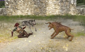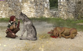 Girl sex with Giant Wolf