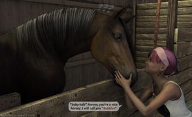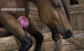 Horse fucks girl in the barn
