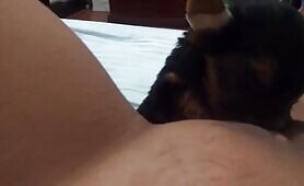 91976 baby yorkie eating mommys hole
