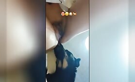Dog licking hot pussy for cum