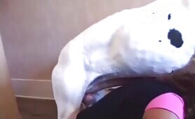 Gigant dog mounting a girl